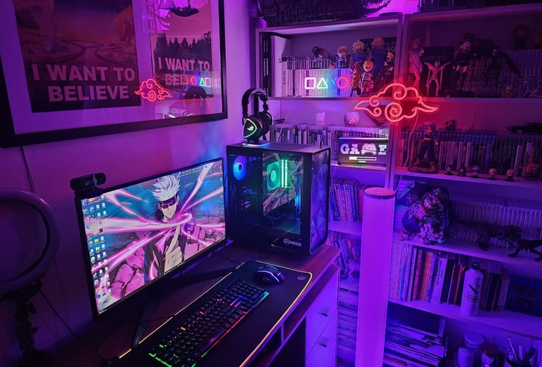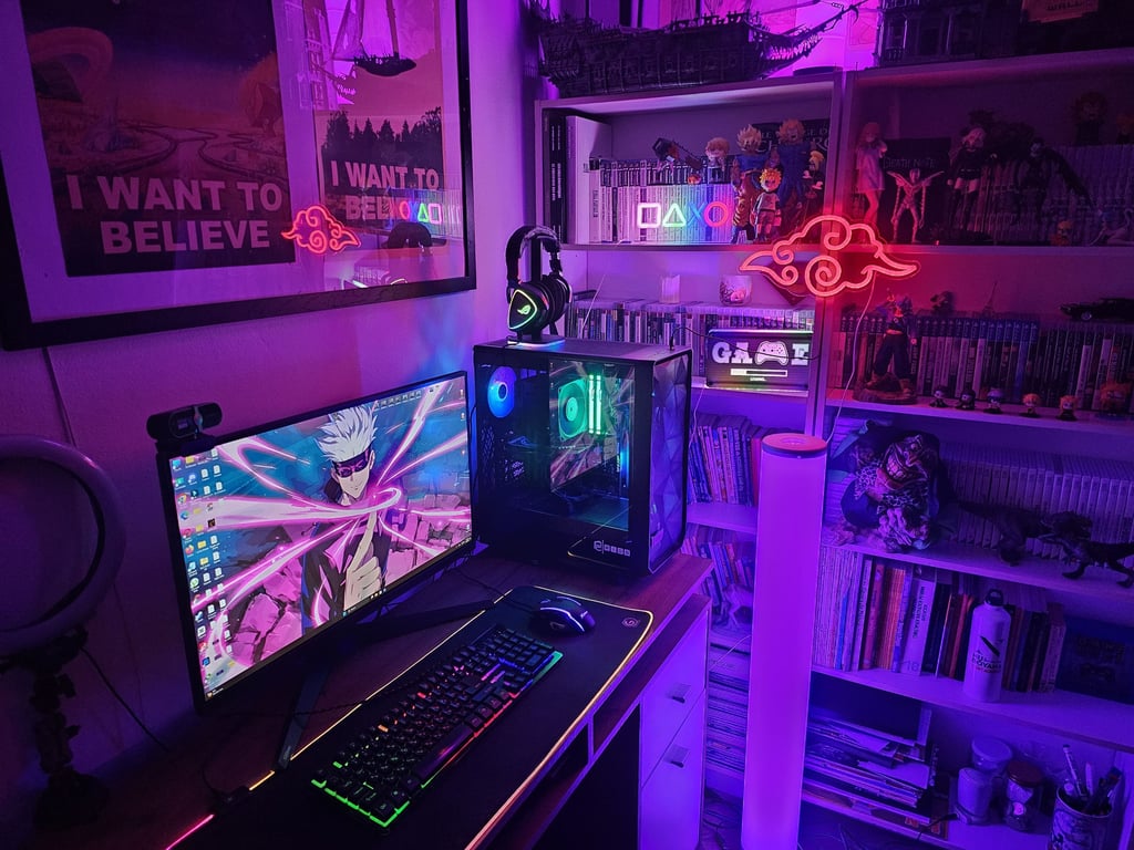 Този фон е също перфектно място за интеграция на различни технологични продукти – например мощен гейминг компютър, слушалки, микрофони, игри,