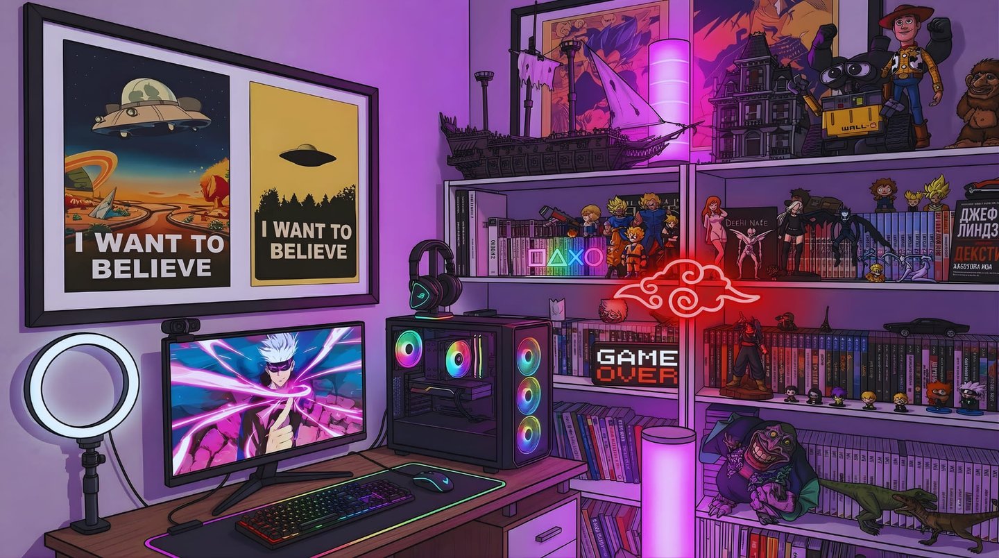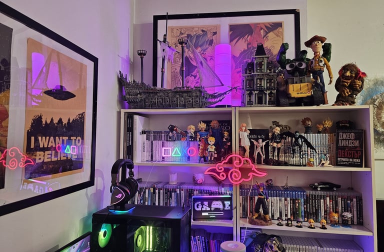 Добре дошли в секцията „Джаджи и фон“! Тук можете да видите част от легендарния фон зад мен – етажерките и декора, които често присъстват в моите лайвове, видеа и гейминг стриймове. Това е мястото, което много от вас вече познават добре, защото именно пред този фон се случват голяма част от нещата, които създавам. Тук ще намерите информация за част от игрите, за които често ме питате, както и за някои от джаджите, фигурките, играчките и предметите, които се виждат на фона. За някои от тях съм добавил и линкове, където можете да ги разгледате или намерите повече информация. Важно е да знаете, че това не е спонсорирано съдържание. Нито една от тези фирми или магазини не ме е спонсорирала – повечето неща съм си закупил лично през годините. Въпреки това реших да направя този малък жест за всички